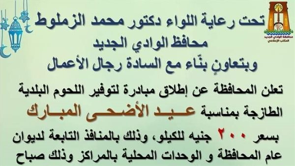 14 منفذا لبيع اللحوم البلدي بسعر 200 جنيه بالوادي الجديد