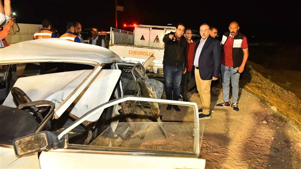 محافظ أسيوط يتفقد موقع حادث تصادم أتوبيس وسيارتين ملاكي أسفر عن وفاة شخصين وإصابة 11 أخرين
