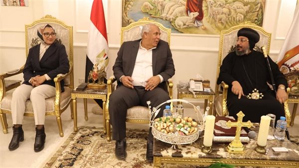 محافظ الوادي الجديد يزور كنيسة السيدة العذراء بالخارجة لتقديم التهنئة بعيد القيامة المجيد