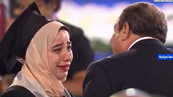 شاهد.. فتاة تخرج عن مسيرة خريجي جامعات مصر وتبكي خلال حديثها مع الرئيس السيسي
