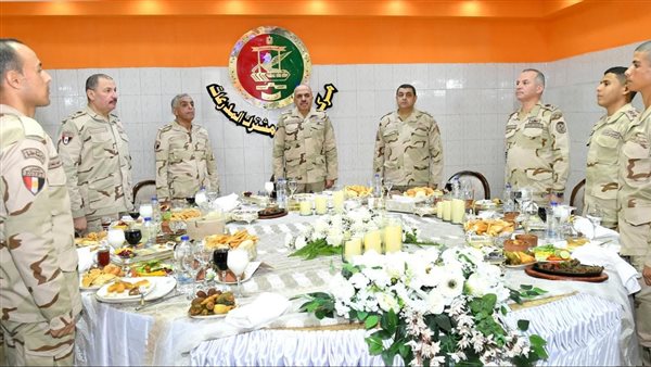 الفريق أحمد خليفة يشارك مقاتلى حرس الحدود والمدرعات وجبة الإفطار.. صور