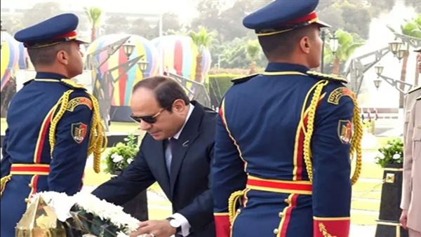 الرئيس السيسي يضع أكاليل الزهور على قبر الجندي المجهول وضريحي «السادات» و«عبدالناصر»