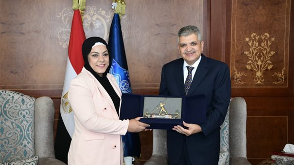 الفريق أسامة ربيع يكرم البطلة الأولمبية سارة سمير.. صور