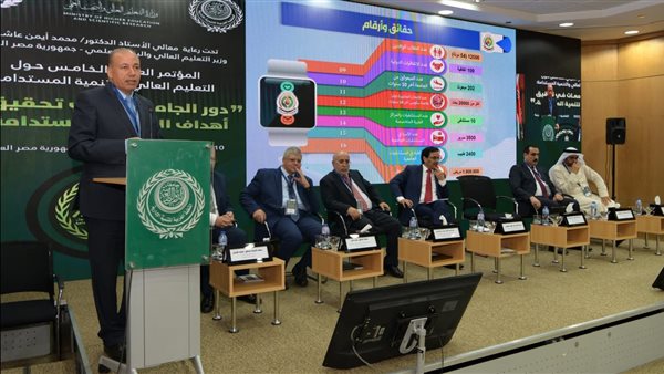 رئيس جامعة المنصورة يعرض تجربة الجامعة في التنمية المستدامة بالمؤتمر العربي الخامس