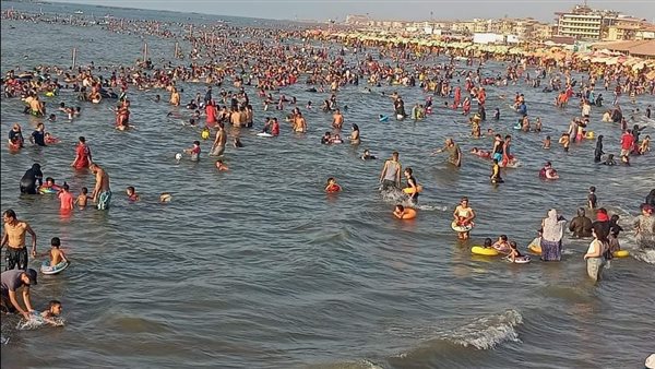 للهروب من الحر.. إقبال كثيف للمواطنين على شواطئ رأس البر