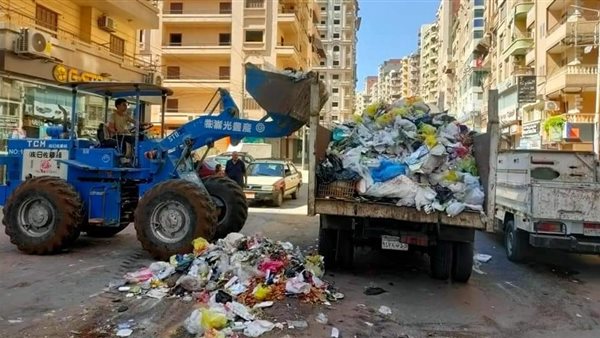 تواصل رفع القمامة والأتربة من شوارع المنصورة.. صور