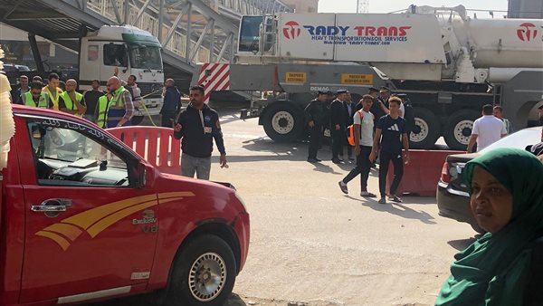 انتشار الأوناش والمعدات لرفع كوبري مشاة شارع أحمد عرابي بالجيزة.. صور