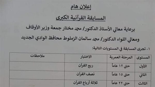 للأسرة والفرد.. 200 ألف جنيه في مسابقة قرآنية بالوادي الجديد