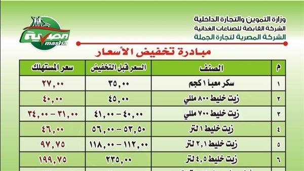 تموين الوادي الجديد تعلن قائمة أسعار منتجات مبادرة «تخفيض أسعار السلع الأساسية»