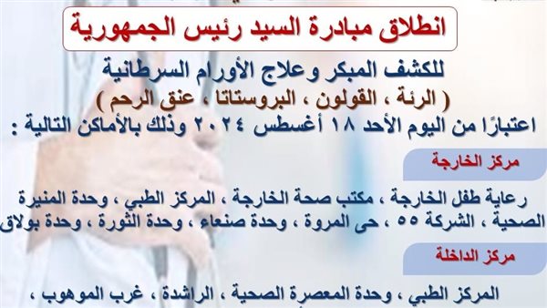 إطلاق مبادرة الكشف المبكر وعلاج الأورام السرطانية بـ31 وحدة صحة بالوادي الجديد