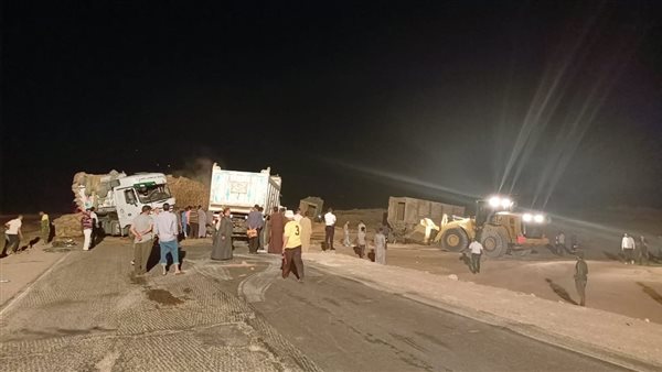 إعادة فتح طريق «الخارجة – الداخلة» بعد رفع حطام تصادم 3 شاحنات بالوادي الجديد
