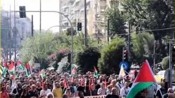 الآلاف يتظاهرون في أثينا للمطالبة بوقف الحرب على غزة