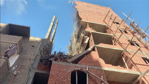 انهيار حوائط من برج مخالف تحت الإنشاء في أسيوط ولجنة هندسية لمعاينته