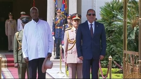 الرئيس السيسي يستقبل نظيره الأوغندي في قصر الاتحادية