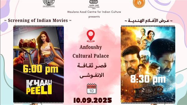 عرض فيلمين ضمن مهرجان الفيلم الهندي بقصر ثقافة الأنفوشي في الإسكندرية