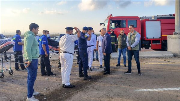 محافظ الإسكندرية يتفقد موقع حادث اشتعال سيارة بالطريق الدولي الساحلي.. صور