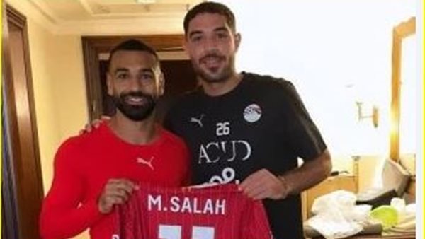 محمد صلاح يهدى قميص ليفربول لـ حمزة علاء بمعسكر المنتخب