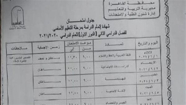 محافظ القاهرة يعتمد جدول امتحانات الشهادة الإعدادية
