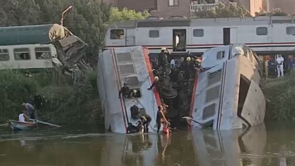 قطار نوم 1087.. تفاصيل تصادم قطارين في المنيا وسقوط عربات بترعة الإبراهيمية
