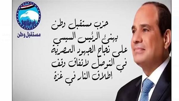 حزب مستقبل وطن يهنئ الرئيس السيسي على نجاح الجهود المصرية في التوصل لاتفاق وقف إطلاق النار في غزة