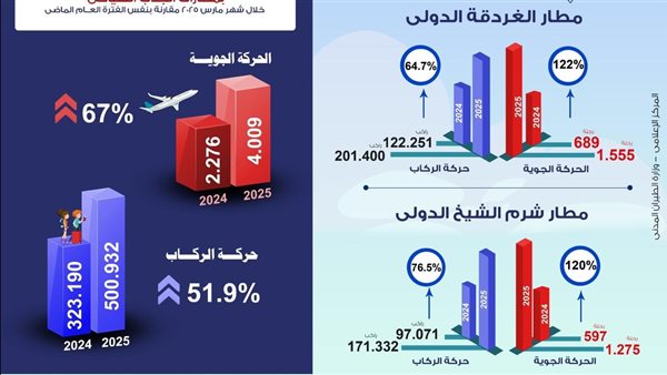 ارتفاع ملحوظ في الرحلات الجوية وحركة الركاب خلال مارس 2025.. تفاصيل