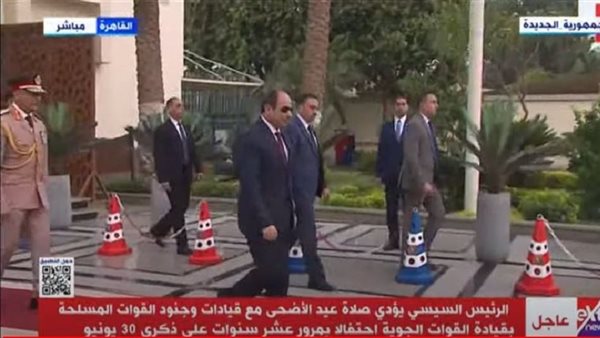 الرئيس السيسي يغادر مسجد القوات الجوية عقب أداء صلاة عيد الأضحى