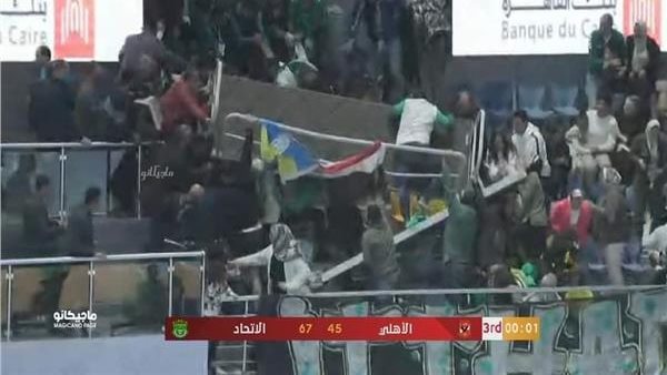 انهيار سور بمدرج صالة حسن مصطفى وتوقف مباراة الأهلي والاتحاد في كرة السلة