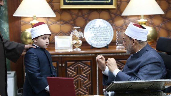 شيخ الأزهر الشريف يستقبل الطفل أنس ربيع متقن حفظ المتون والقرآن الكريم