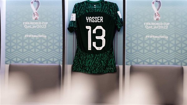 رغم خروجه من قائمة الصقور.. قميص ياسر الشهراني في غرفة ملابس منتخب السعودية قبل مواجهة بولندا