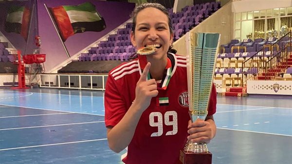 لاعبة كرة اليد شيماء كشكوش تحصل على كأس الدوري لنادي الجزيرة الإماراتي