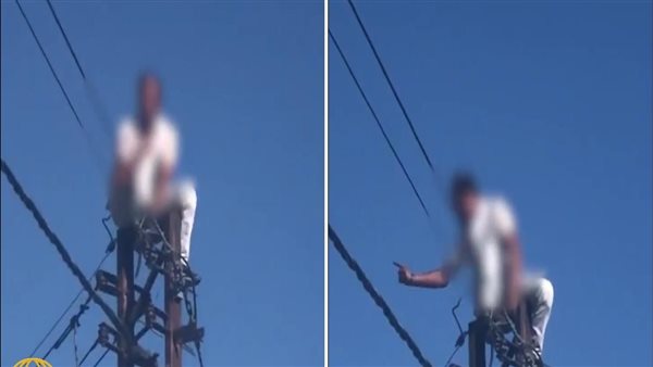 شاب يصعد فوق عمود ضغط عالي بطريق الأوتوستراد ويهدد بالانتــ.ـــحار