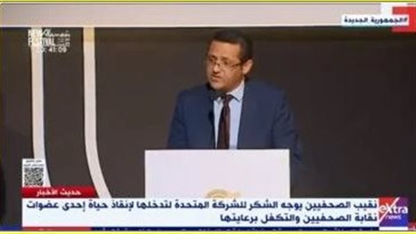 نقيب الصحفيين يشكر «المتحدة» لتدخلها لإنقاذ حياة صحفية والتكفل برعايتها