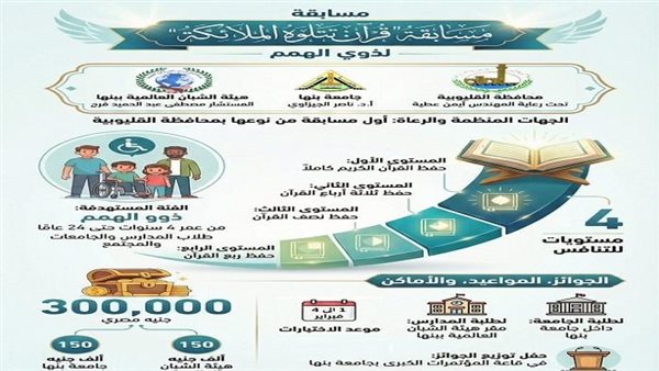 محافظة القليوبية تطلق مسابقة "قرآن تتلوه الملائكة" لذوي الهمم