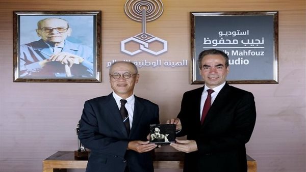 رئيس الوطنية للإعلام يهدي سفير اليابان نسخة من أغاني أم كلثوم