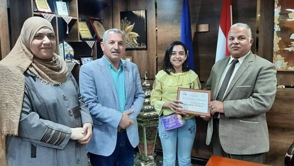 وكيل تعليم دمياط يكرم هاجر أشرف الحاصلة على المركز الثاني في مسابقة الموهوبين والمتفوقين