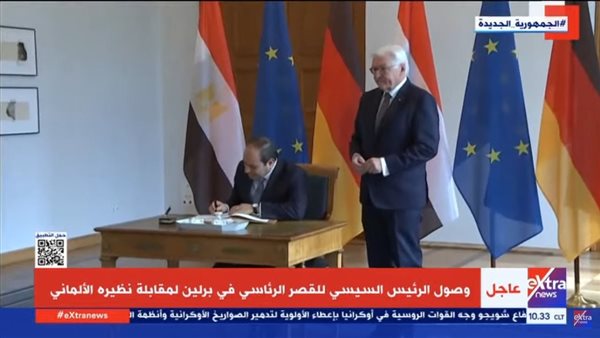 الرئيس السيسي يوقع في دفتر التشريفات بالقصر الرئاسي الالماني