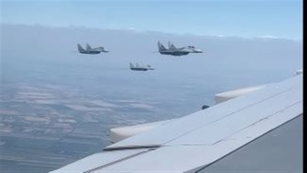 مقاتلات شرفية ترافق طائرة الرئيس السيسي في صربيا ترحيبا به.. فيديو