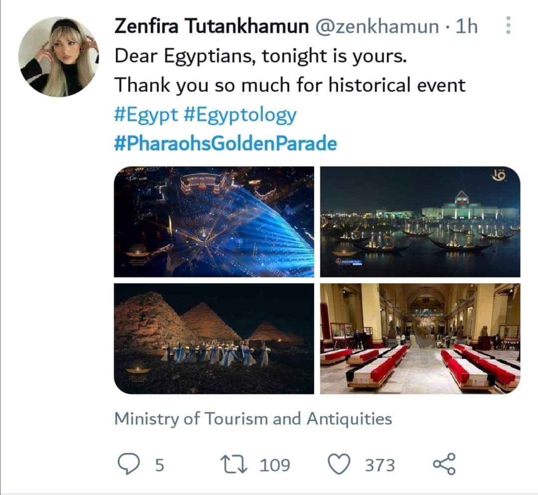 وقال صاحب حساب Teddy Kurniawan Liong فى تغريدة : كان موكب الفراعنة الذهبي اليوم حدثًا تاريخيًا عظيما ورائعا ! احب مصر من اندونيسيا! .