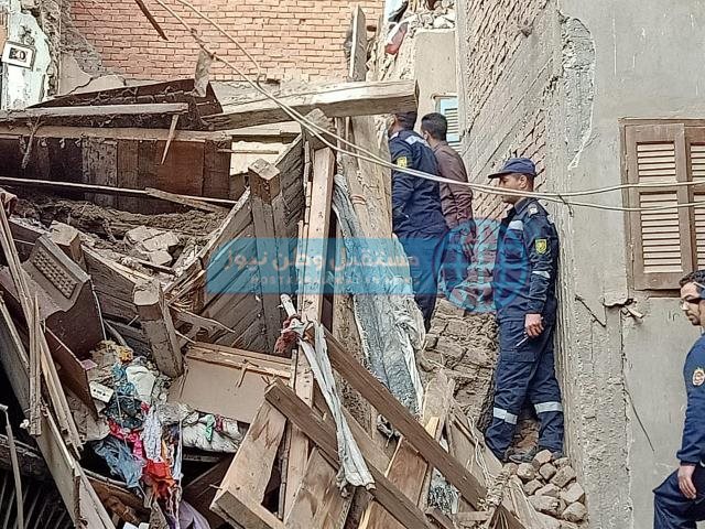 انهار منزل قديم مكون من طابقين وجزء من منزل آخر بحي غرب مدينة أسيوط دون إصابات، أو خسائر في الأرواح.