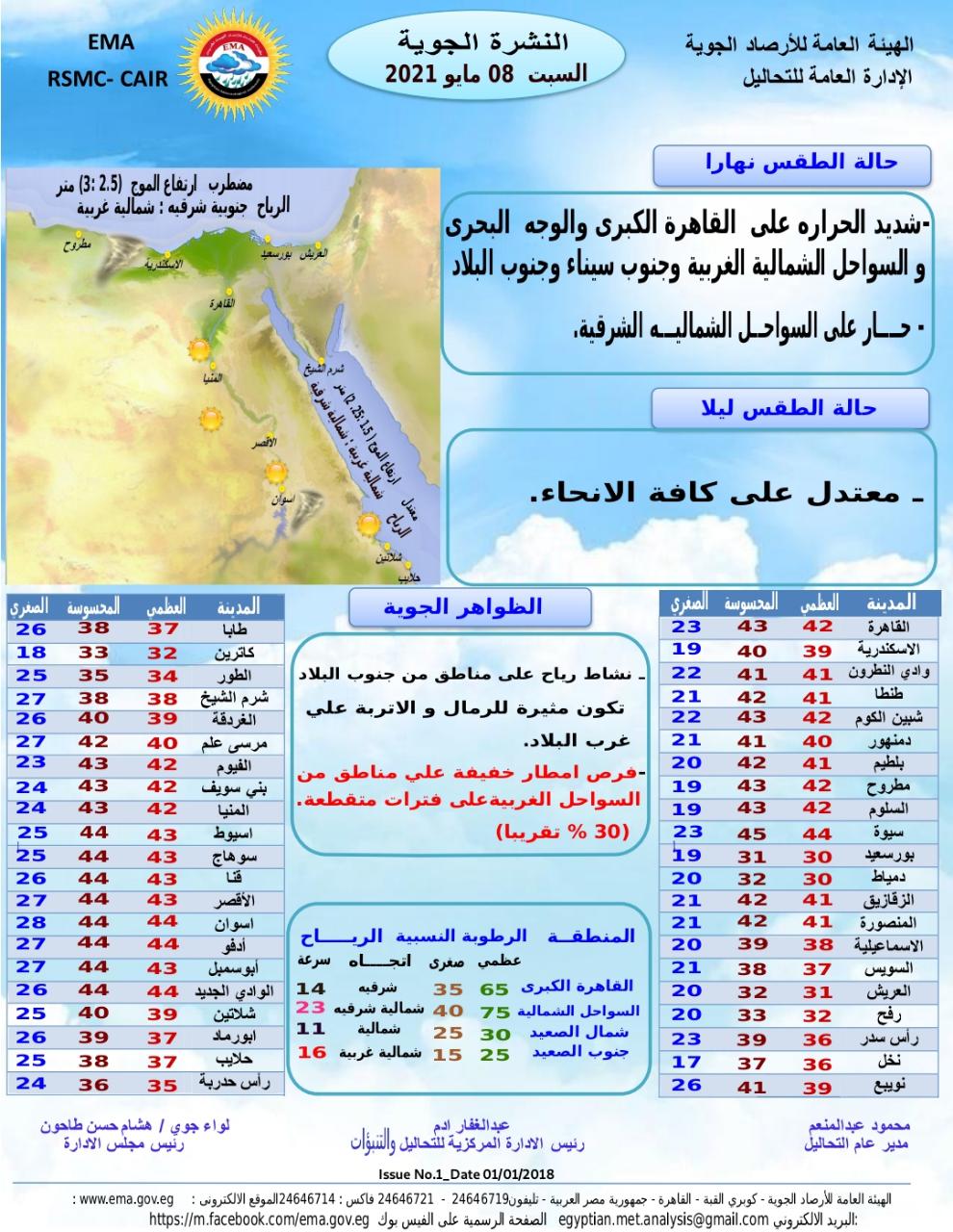 وفيما يلى بيان بدرجات الحرارة المتوقعة غدا على محافظات ومدن مصر:-