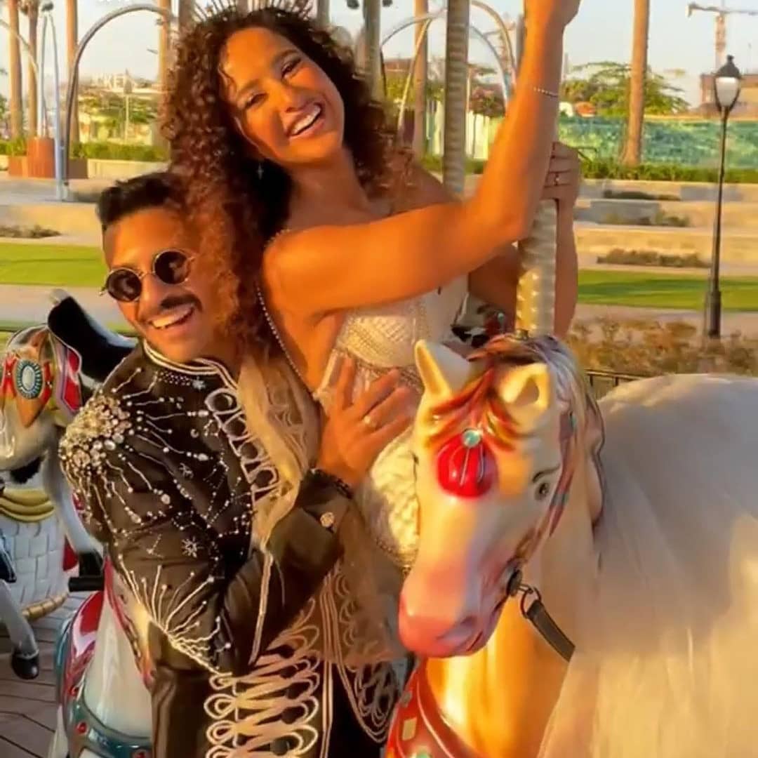 في الملاهي.. صور جديدة من زفاف حسن أبوالروس ومصممة الجرافيك غادة والي