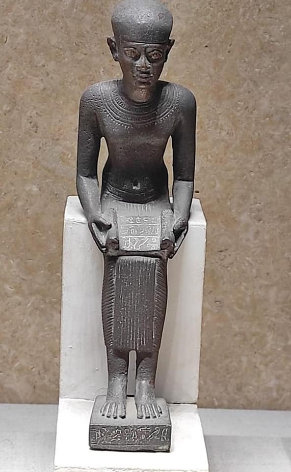 يعرض تمثال للمعبود ايمحوتب، مصنوع من البرونز يرجع إلى عصر الدولة القديمة. وكان ايمحوتب وزيرا ومهندسا معماريا للملك زوسر مؤسس الأسرة الثالثة، وهو أول من استخدم الحجر المنحوت في البناء لتشييد الهرم المدرج في منطقة آثار سقارة.