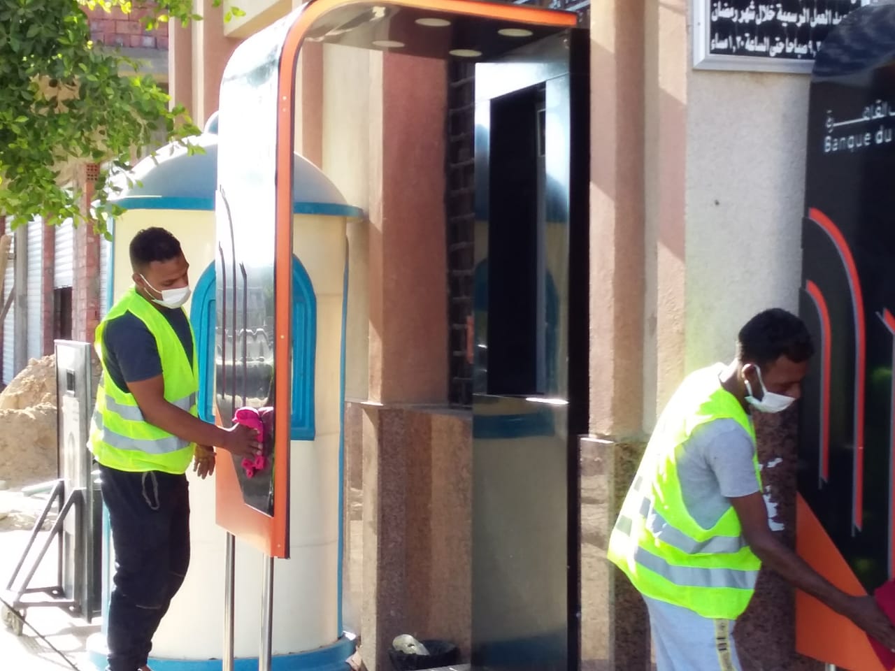 تعقيم ماكينات الصرافة الآلية بواحة الخارجة في الوادي الجديد