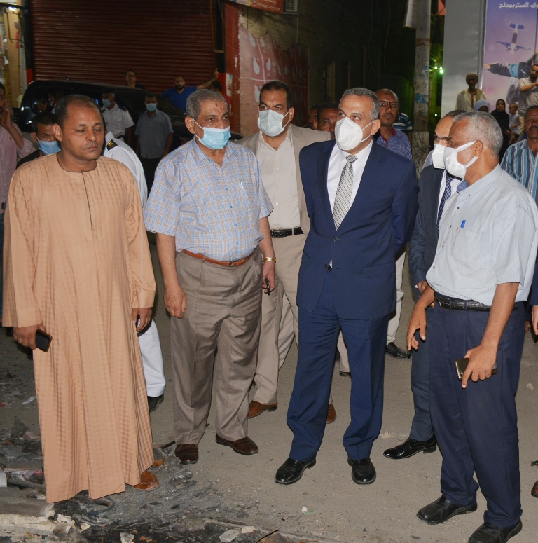 محافظ سوهاج يتفقد آثار حريق معرض طهطا ويوجه بسرعة صرف التعويضات