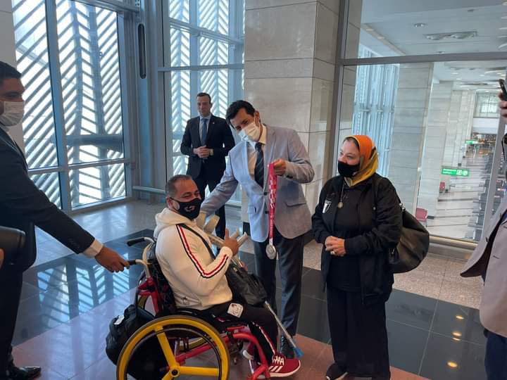 وزير الرياضة يستقبل البعثة المصرية البارالمبية بمطار القاهرة.. صور