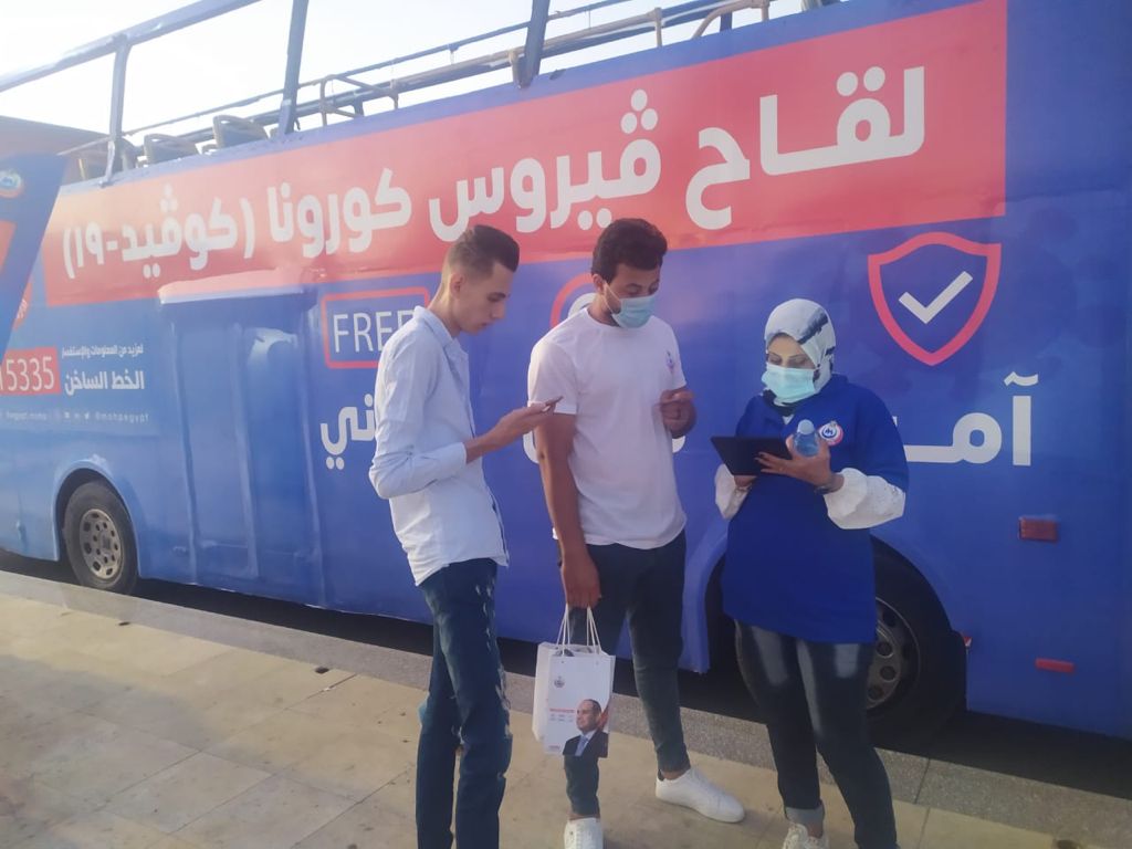 وأوضح أن الحملة تجوب مختلف الأماكن العامة والميادين وأماكن التجمعات ومواقف المواصلات العامة ومحطات المترو والقطارات، من الساعة العاشرة صباحًا وحتى العاشرة مساءً، مضيفًا أنه تم تجهيز 10 مراكز شباب بالمحافظات التي انطلقت بها الحملة اليوم، لتلقي المواطنين اللقاح في نفس اليوم فور التسجيل بالحملة، مشيرًا إلى تجهيز مراكز شباب بجميع المحافظات التي تجوبها الحملة بالتعاون مع وزارة الشباب والرياضة، وذلك لمنع التزاحم بمراكز تلقي اللقاح.