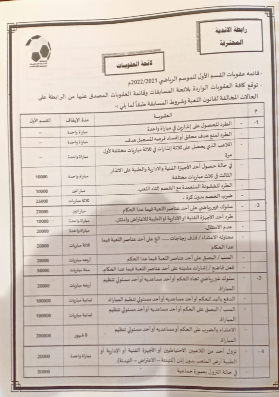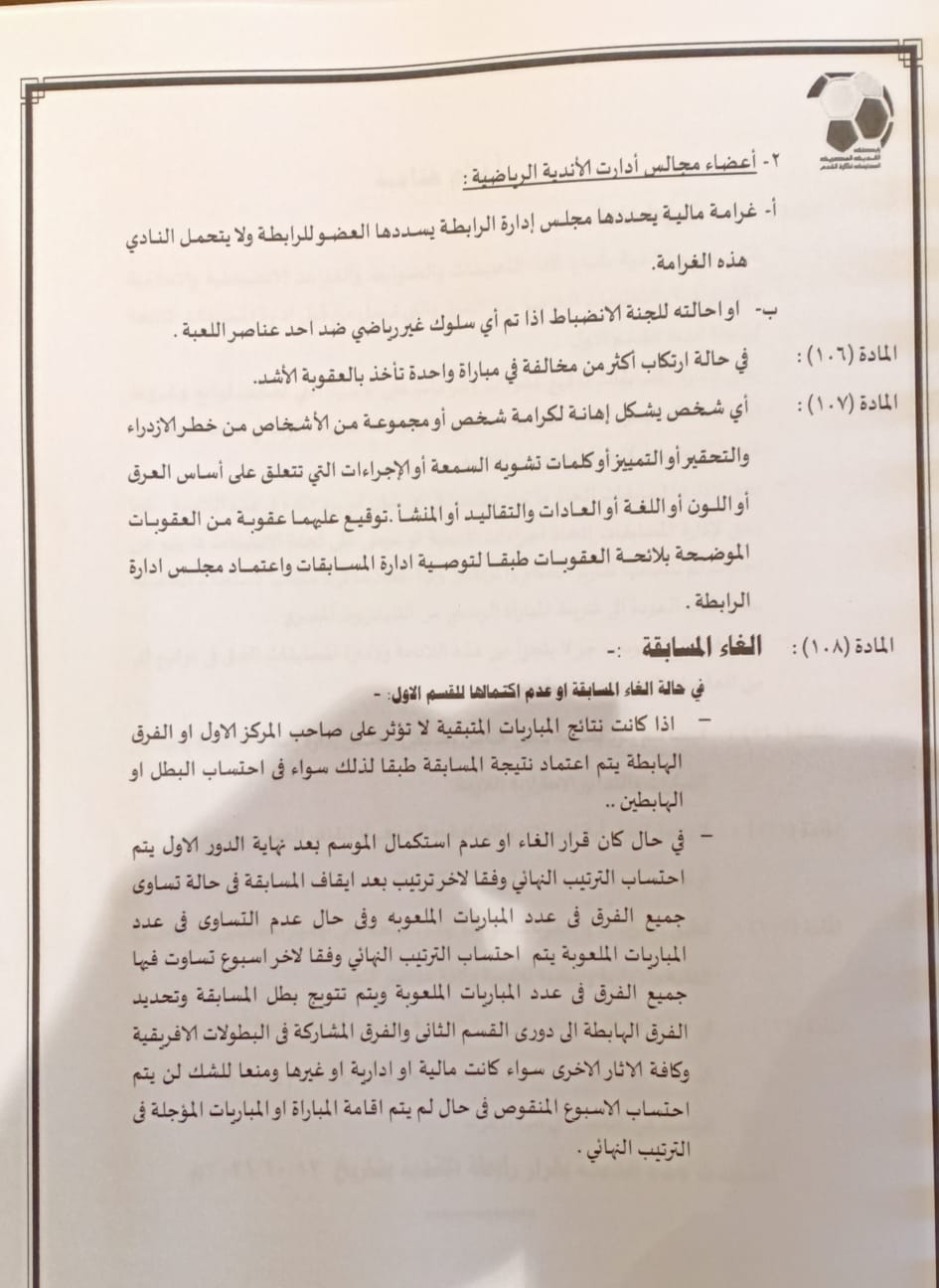 تعرف على لائحة رابطة الأندية للموسم الجديد والعقوبات