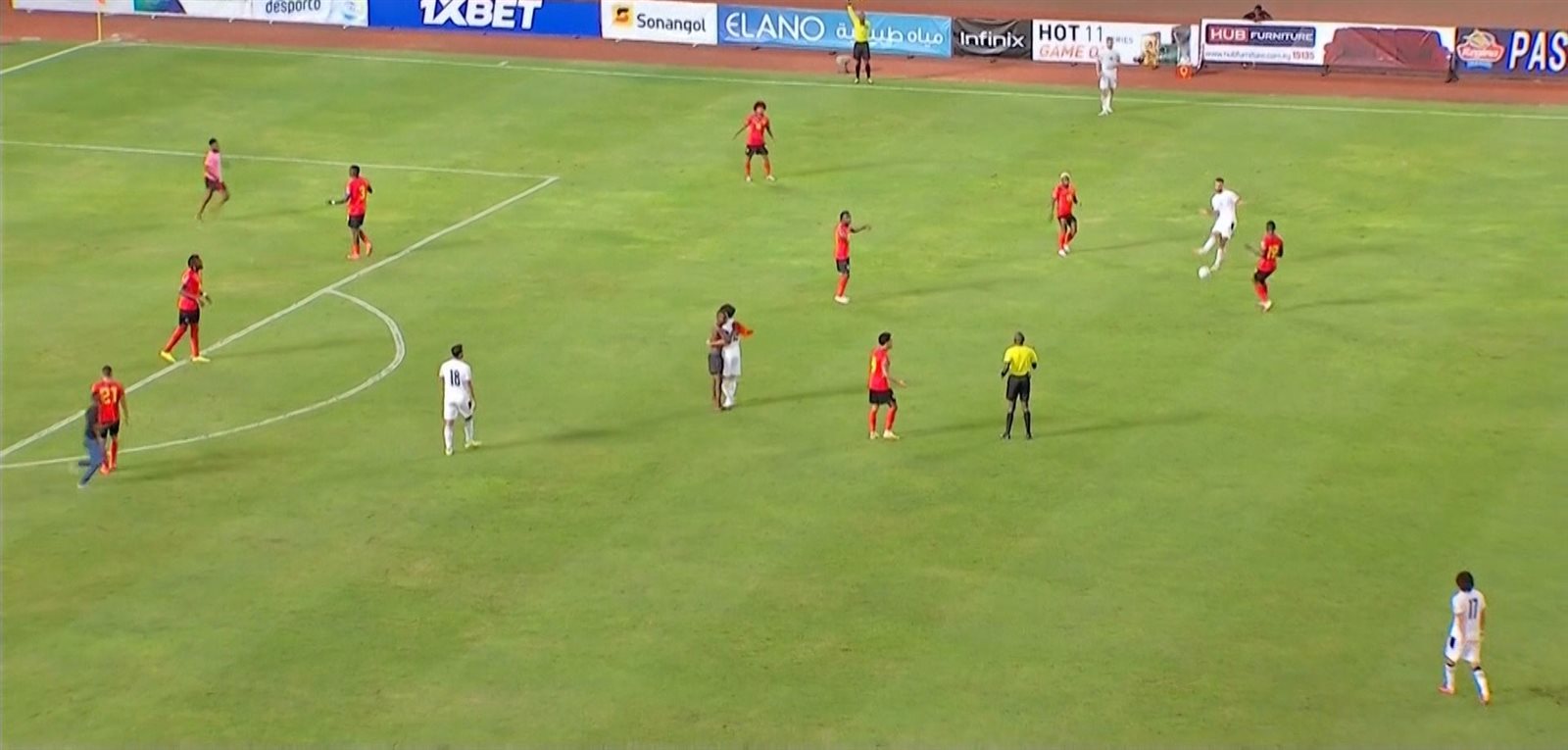 وتوقفت المباراة عدة مرات بعد ذلك؛ نتيجة اقتحام بعض المشجعين أيضًا أرضية الملعب؛ لالتقاط الصور مع اللاعبين؛ خاصة مع محمد صلاح نجم فريق ليفربول الإنجليزي ومنتخب مصر.