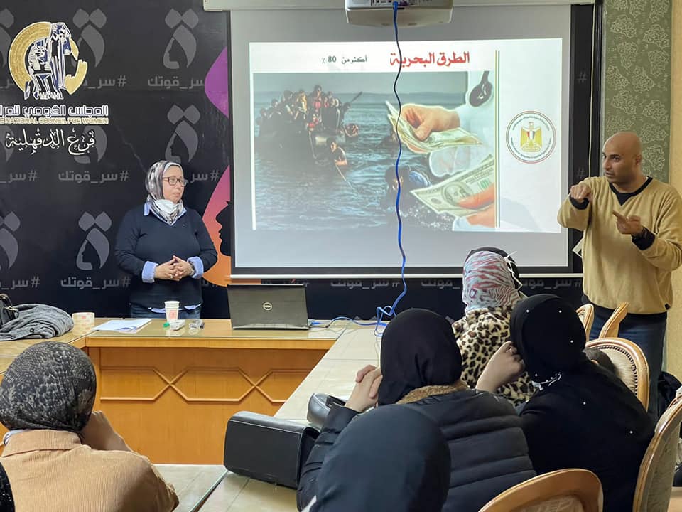 وتمهيداً لإطلاق حملة طرق الأبواب بالمحافظة، نظم المجلس في وقت سابق، ثلاث دورات تدريبية لعدد 100 من رائدات المجلس بالمحافظة، على رسائل توعية بمخاطر الهجرة غير الشرعية وجهود الدولة للحد منها والتعريف بالبدائل المتاحة لتوفير فرص العمل الآمن بالداخل ، وتم التدريب بمقر فرع المجلس بمحافظه الدقهلية ، تحت إشراف الدكتورة أمينه شلبي، مقرره فرع المجلس، على مدي ثلاث أيام منافس الأول وحتى اليوم.