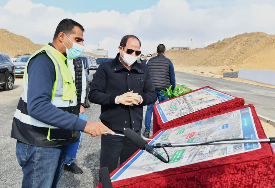 الرئيس السيسي يتفقد أعمال إنشاء محور حسب الله الكفراوي.. صور